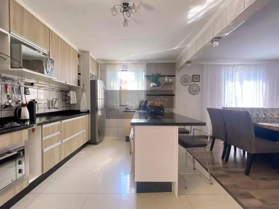A casa principal oferece: 3 dormitórios, sendo 1 suíte; Banheiro social, ambos completos e com ótimo acabamento; Sala de TV privativa, garantindo conforto e privacidade; Sala de jantar integrada à cozinha, com móveis planejados de excelente padrão; Acesso direto à área de lazer, perfeita para reunir amigos e familiares, com churrasqueira e espaço de lavanderia.